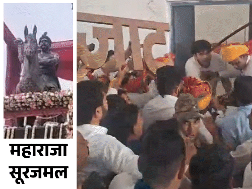 सूरजमल की प्रतिमा अनावरण समारोह में फाउंडेशन वॉल से जाट शब्द हटाने पर हंगामा