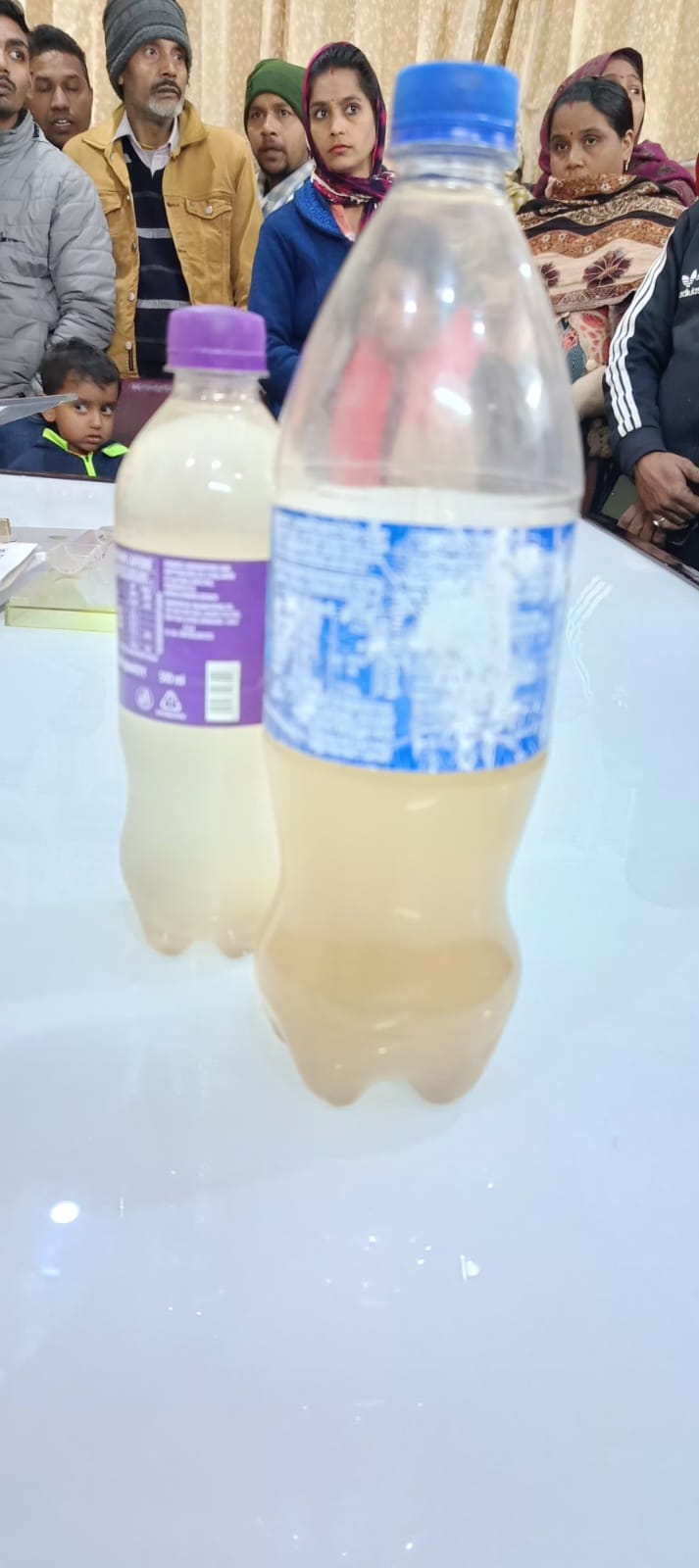 शहर के वार्ड संख्या 20 मोहल्ला कम्बल वाली गली में टंकियों से गंदा पानी आने पर गुस्साए मोहल्लेवासी नगर पालिका में पहुंचे और जमकर विरोध प्रदर्शन करते हुए हंगामा किया। मोनिका ने गंदे पानी से भरी बोतल नगर पालिका ईओ को दिखाई, वहीं जलकल विभाग के जेई पर फोन न उठाने को आरोप लगाया। मोहल्लेवासियों ने बताया कि वह इस समस्या से पिछले कई साल से जूझते आ रहे है। नई पाइप लाइन डलने के बाद भी समस्या का समाधान नहीं हो पाया है। ईओ ने मौके पर जलकल विभाग के एई और जेई को तलब किया।