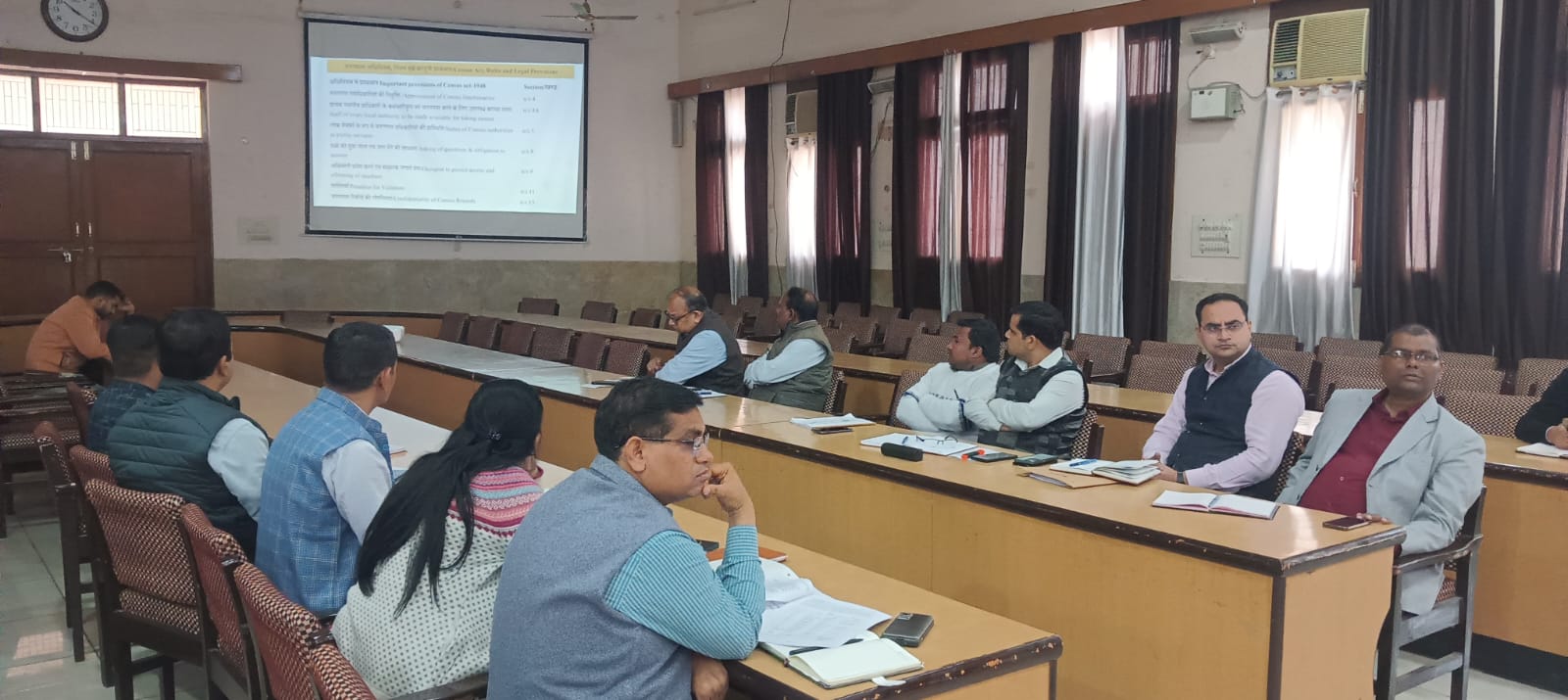 प्रशिक्षण कार्यक्रम में जनगणना निदेशालय से आए पदाधिकारी आशुतोष कुमार, गौरव कुमार तथा ज्योति नामदेव द्वारा जनगणना की प्रक्रिया, उद्देश्य, तकनीकी प्रावधानों एवं अद्यतन दिशा-निर्देशों पर विस्तारपूर्वक जानकारी दी गई। उन्होंने बताया कि जनगणना-2027 देश की जनसंख्या, सामाजिक-आर्थिक स्थिति, आवासीय स्थिति, साक्षरता, रोजगार एवं अन्य महत्वपूर्ण सूचनाओं के संकलन का व्यापक अभियान है। जिसके आधार पर विभिन्न शासकीय योजनाओं एवं नीतियों का निर्धारण किया जाता है। प्रशिक्षण के दौरान जनगणना प्रपत्रों के सही एवं त्रुटिरहित भरने, डिजिटल माध्यमों के उपयोग, हाउस लिस्टिंग एवं जनसंख्या गणना चरणों, पर्यवेक्षण व्यवस्था तथा डेटा गोपनीयता के संबंध में विस्तार से मार्गदर्शन दिया गया। अधिकारियों को बताया गया कि जनगणना कार्य पूर्णत: निष्पक्ष, पारदर्शी एवं समयबद्ध ढंग से संपन्न किया जाना सुनिश्चित किया जाए। एडीएम गजेन्द्र कुमार ने कहा कि जनगणना राष्ट्रीय महत्व का कार्य है। जिसमें प्रत्येक अधिकारी एवं कर्मचारी की भूमिका अत्यंत महत्वपूर्ण है। उन्होंने निर्देशित किया कि सभी संबंधित अधिकारी अपने-अपने क्षेत्र में अधीनस्थ कर्मचारियों को भी समुचित प्रशिक्षण प्रदान करें। प्रतिभागियों द्वारा पूछे गए प्रश्नों का समाधान जनगणना निदेशालय के अधिकारियों द्वारा किया गया।