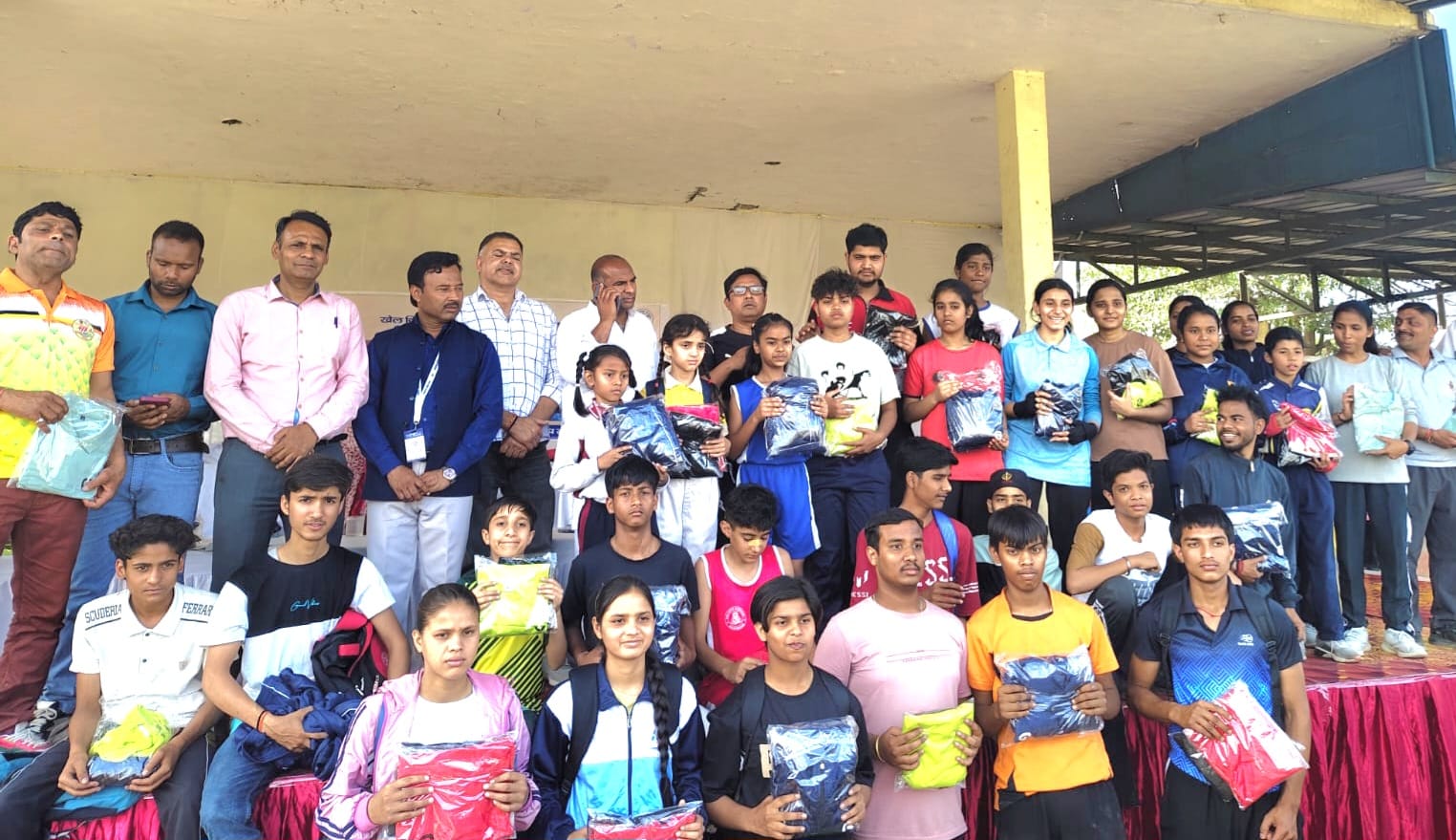 बॉक्सिंग खेल में बालक एवं बालिका वर्ग में 20 प्रथम 20 द्वितीय एवं 40 तृतीया एवं वुशु खेल में बालक एवं बालिका वर्ग में 20 प्रथम 20 द्वितीय एवं 40 तृतीया एवं वॉलीबॉल बालक एवं बालिका वर्ग में 2 प्रथम एवं 2 द्वितीय टीमों को कुल 212 खिलाड़ियों को ट्रैकसूट एवं खेलकिट प्रदान की गई एवं तीनों खेलो के निर्णायकों को सम्मानित किया गया ।