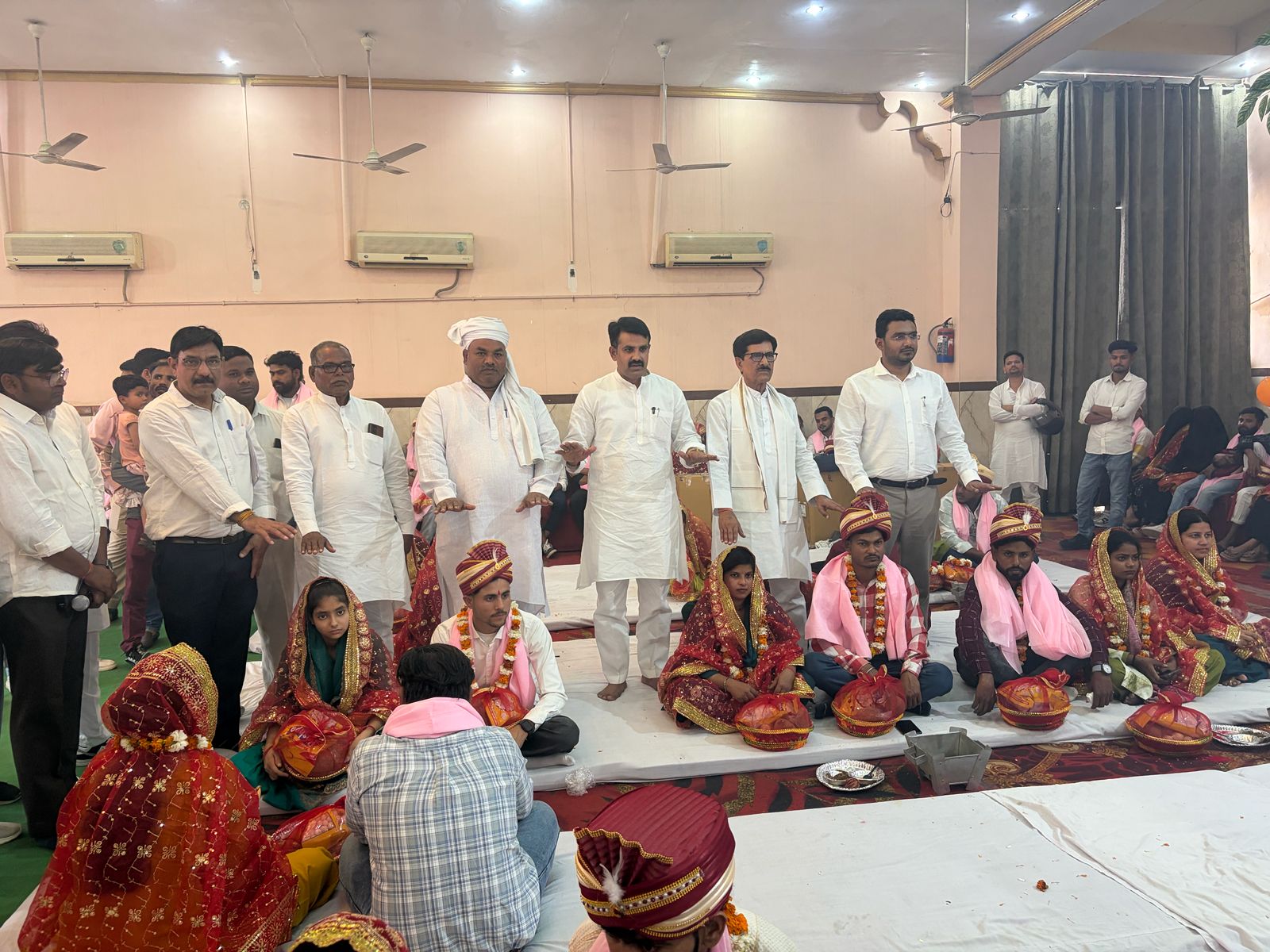 सदर ब्लाक क्षेत्र में स्थित मधुर मिलन बैंकट हॉल में मुख्यमंत्री सामूहिक विवाह योजना के तहत 66 जोड़ों की शादी बड़े धूमधाम के साथ हुई है। कार्यक्रम में पहुंचे जिला पंचायत अध्यक्ष डॉक्टर वीरपाल निवाल और ब्लॉक प्रमुख अमित चौधरी ने नव विवाहित जोड़ों को आशीर्वाद दिया है। सदर ब्लॉक के 50 जोड़ों की शादी हुई है। जिसमें 29 हिंदू जोड़े और 21 मुस्लिम जोड़े शामिल है। हिंदू जोड़ों का वैदिक मंत्र उच्चारण के साथ शादी हुई है। वही 21 जोड़ों का निकाह कराया गया है। वही जानसठ नगर पंचायत और मीरापुर नगर पंचायत के जोड़ों की भी यहीं पर शादी हुई है। नगर पंचायत जानसठ के पांच जोड़ जिसमें चार हिंदू जोड़े और एक मुस्लिम जोड़े की शादी हुई है। मीरपुर नगर पंचायत के 11 जोड़ों की शादी हुई है जिसमें तीन हिंदू और आठ मुस्लिम जोड़े हैं। कार्यक्रम में अच्छे भोजन की व्यवस्था रही। प्रत्येक बेटी के खाते में कन्यादान के रूप में 60 हजार की धनराशि पहुंची है। नव विवाहित जोड़े को योजना के तहत अन्य सामान भी दिया गया है।