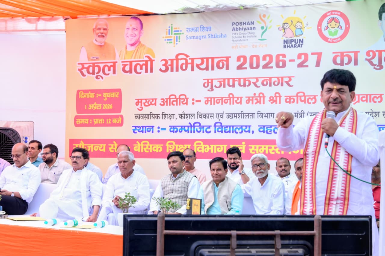उत्तर प्रदेश के यशस्वी मुख्यमंत्री योगी आदित्यनाथ की प्रेरणा एवं मंशा के अनुरूप जनपद मुज़फ्फरनगर में ‘स्कूल चलो अभियान-2026’ का आज वहलना नगर क्षेत्र स्थित कम्पोजिट विद्यालय में अत्यंत उत्साह, जनसहभागिता एवं व्यापक जागरूकता के साथ भव्य शुभारंभ किया गया। कार्यक्रम का विधिवत शुभारंभ दीप प्रज्वलन के साथ हुआ, जिसके उपरांत प्रदेश सरकार के  राज्यमंत्री (स्वतंत्र प्रभार) व्यावसायिक शिक्षा कौशल विकास एवं उद्यमशीलता विभाग उत्तर प्रदेश सरकार कपिल देव अग्रवाल, जिला पंचायत अध्यक्ष वीरपाल निर्वाल एवं जिलाधिकारी उमेश मिश्रा, मुख्य विकास अधिकारी  कंडारकर कमल किशोर देशभूषण सहित अन्य प्रशासनिक अधिकारियों द्वारा छात्र-छात्राओं की जागरूकता रैली को हरी झंडी दिखाकर रवाना किया गया। इससे पूर्व मंत्री कपिल देव ने बच्चों को शिक्षा के प्रति जागरूक करते हुए उन्हें नियमित रूप से विद्यालय आने, मन लगाकर अध्ययन करने तथा अपने उज्ज्वल भविष्य के निर्माण हेतु प्रेरित किया। साथ ही उत्कृष्ट कार्य करने वाले शिक्षकों को सम्मानित कर, छात्र-छात्राओं को पुस्तकें, पेंसिल एवं अन्य शैक्षिक सामग्री से युक्त किट वितरित कर उनके उत्साहवर्धन का कार्य किया।