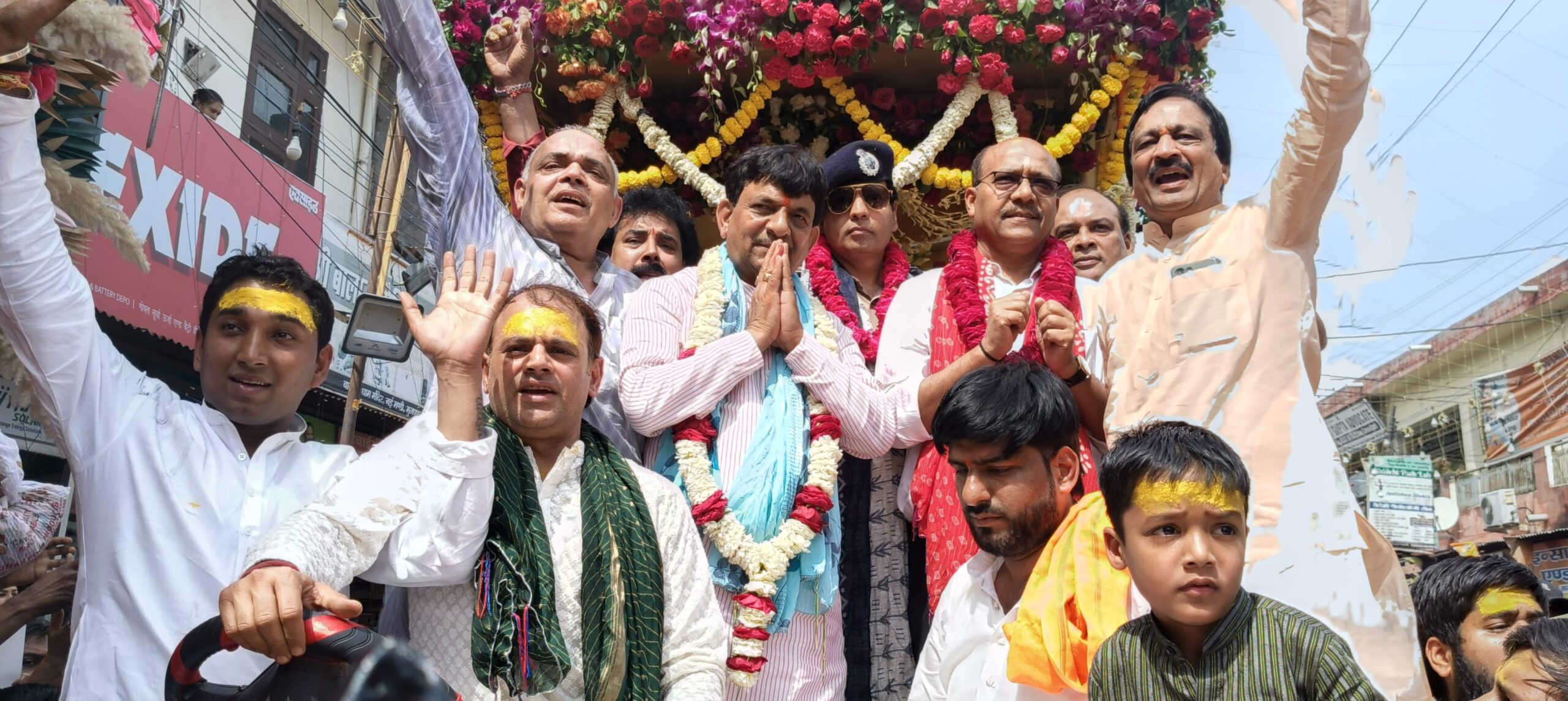 इसके बाद श्री बालाजी महाराज स्वर्ण रथ पर विराजमान हुए। स्वर्ण रथ पर बालाजी महाराज की विशेष आरती की गई, जिसमें राज्यमंत्री कपिलदेव अग्रवाल नगरपालिका चेयरपर्सन मीनाक्षी स्वरूप, बीजेपी नेता गौरव स्वरूप सपा नेता राकेश शर्मा व पंकज गुरुजी डीएम, एसएसपी ने की रथ पर बाबा की आरती की। बालाजी मंदिर अध्यक्ष शंकर तायल ने पटका पहनाकर व प्रतीक चिन्ह देकर सम्मानित किया। भगवान बालाजी महाराज की शोभायात्रा मंदिर प्रांगण से प्रारम्भ हुई। शोभायात्रा में करीब 150 बैँड बाजे, डीजे, आकर्षक झांकियां शामिल रही। भगवान बालाजी महाराज के रथ में बंधे रस्से को श्रद्धालु अपने हाथों से खींचते हुए लेकर चले। शहर में भक्तों के द्वारा हजारों की संख्या में भंडारों का आयोजन किया गया। शोभायात्रा शहर के विभिन्न स्थानों से निकल गई।