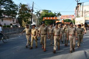 आगामी त्यौहारों को देखते हुए एसएसपी संजय कुमार वर्मा ने पुलिस फोर्स के साथ शांति व्यवस्था बनाए रखने के लिए फ्लैग मार्च निकाला है। एसएसपी ने इस दौरान सुरक्षा व्यवस्था को भी परखा है। वहीं सबंधित थाना प्रभारी को विभिन्न बिन्दुओं पर दिशा निर्देश भी दिए है।